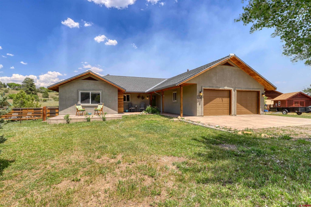 Surround yourself in relaxed luxury-this beautiful and stylish single level abode offers the ideal combination of low maintenance mountain lifestyle with close conveniences yet located only moments to miles of forest trails and lakes. Fully furnished 1586 sf with 3 bedrooms and 2 baths, vaulted ceiling great room, 2 car attached garage, covered walk entrance and fenced yard. Seamless open living with sprawling primary suite, rich accents and attention paid to every detail-Experience total serenity in this gorgeous Aspen tree setting tucked into a quaint cul de sac. Mountain rustic privacy fencing and green space backing creates an absolutely perfect hidden sanctuary yet in just minutes be paddling your board across the mountain view lined lake and hop on your bike to head into miles and miles of forest trails. Stay organized and dry in the roomy 2 car garage with even more room to park cars, the RV and OHV's on the wide concrete drive. Enter through the pretty covered entrance with stamped concrete walkway and sun and shade patios. Curl up with your morning coffee aside the new soapstone wood stove in the most lovely open and naturally sunlit vaulted ceiling great room ever! Gather in the simple and well designed kitchen and have fun sipping wine, enjoying good conversation and exploring your secret chef passions. Awake each day and retreat to the gorgeous luxury primary suite with oversized windows, large walk in closet, and spa feel bath with double sink vanity and enormous custom tiled walk in shower with frameless glass enclosure. Optimal split floor plan provides the perfect flow and privacy for all. You'll find two very generous sized bedrooms and full bath optimally located on the N.W wing being separated from the primary suite by the (heart of the home) the vaulted great room and kitchen space. Hello world! Simply slide open the great room glass door for indoor outdoor grill to table get togethers and throw the ball during your pup play time in the beautiful back yard. Control your temperature from afar with wifi enabled thermostats, no wait no waste with new Navien tankless hot water heaters and feel the toe warming comfort of the new radiant in floor heating while watching the snowflakes drift down during the magical Pagosa winters. Conveniently placed laundry room with utility sink for fast easy clean up following an adventurous motorsport day! Pagosa Springs is in the the top 10 best mountain town to live with some of the best winter sports in the world at Wolf Creek, the world's deepest hot springs, Over 2.5 million acres of National Forest and Wilderness land, an abundance of fish rich live river waters and lakes. Keep active all year round with four seasons of fun as well as access to membership to the Pagosa lakes staffed Recreational Center. This one's a keeper! Note-property extends beyond fence. Set up your private showing today-hope to see you soon!